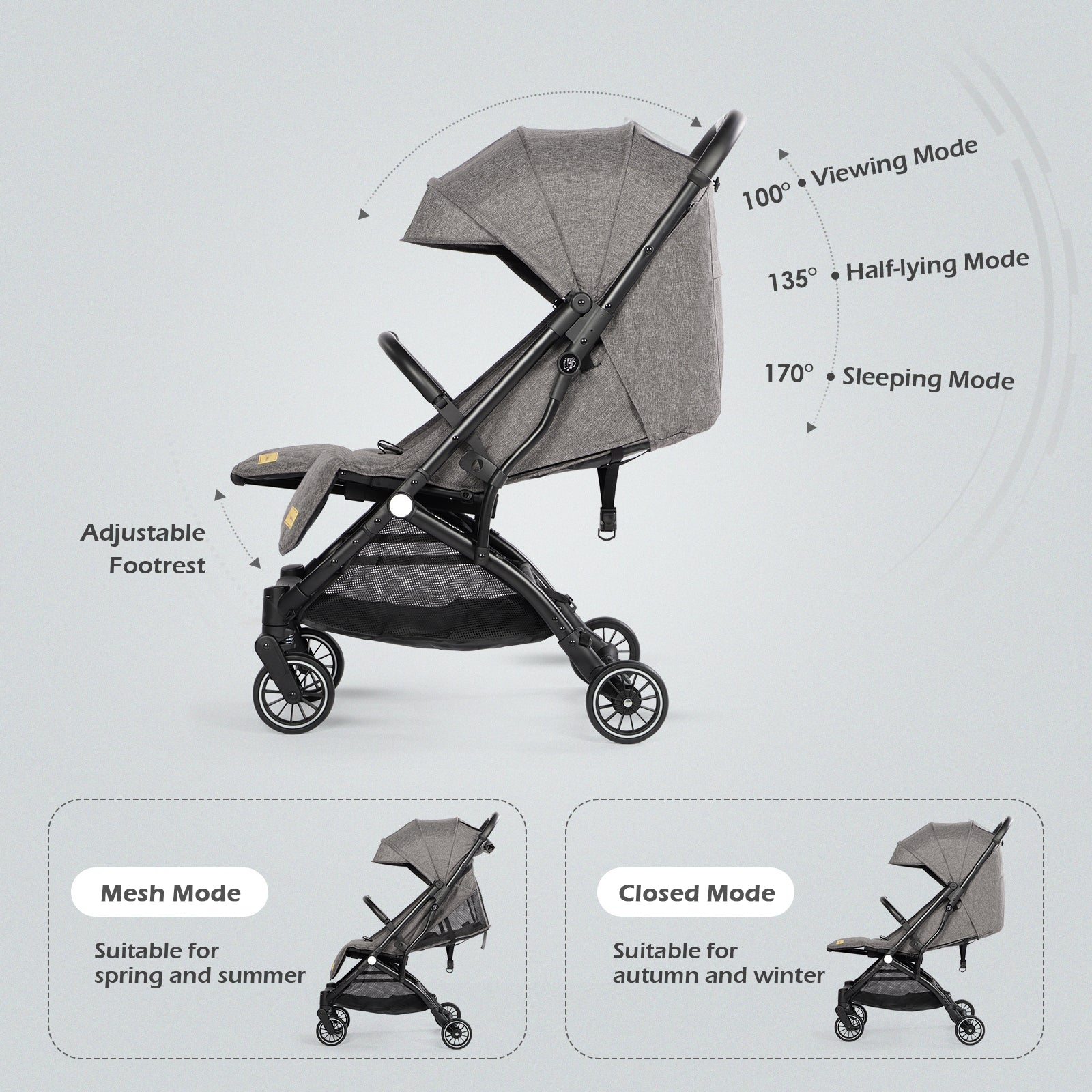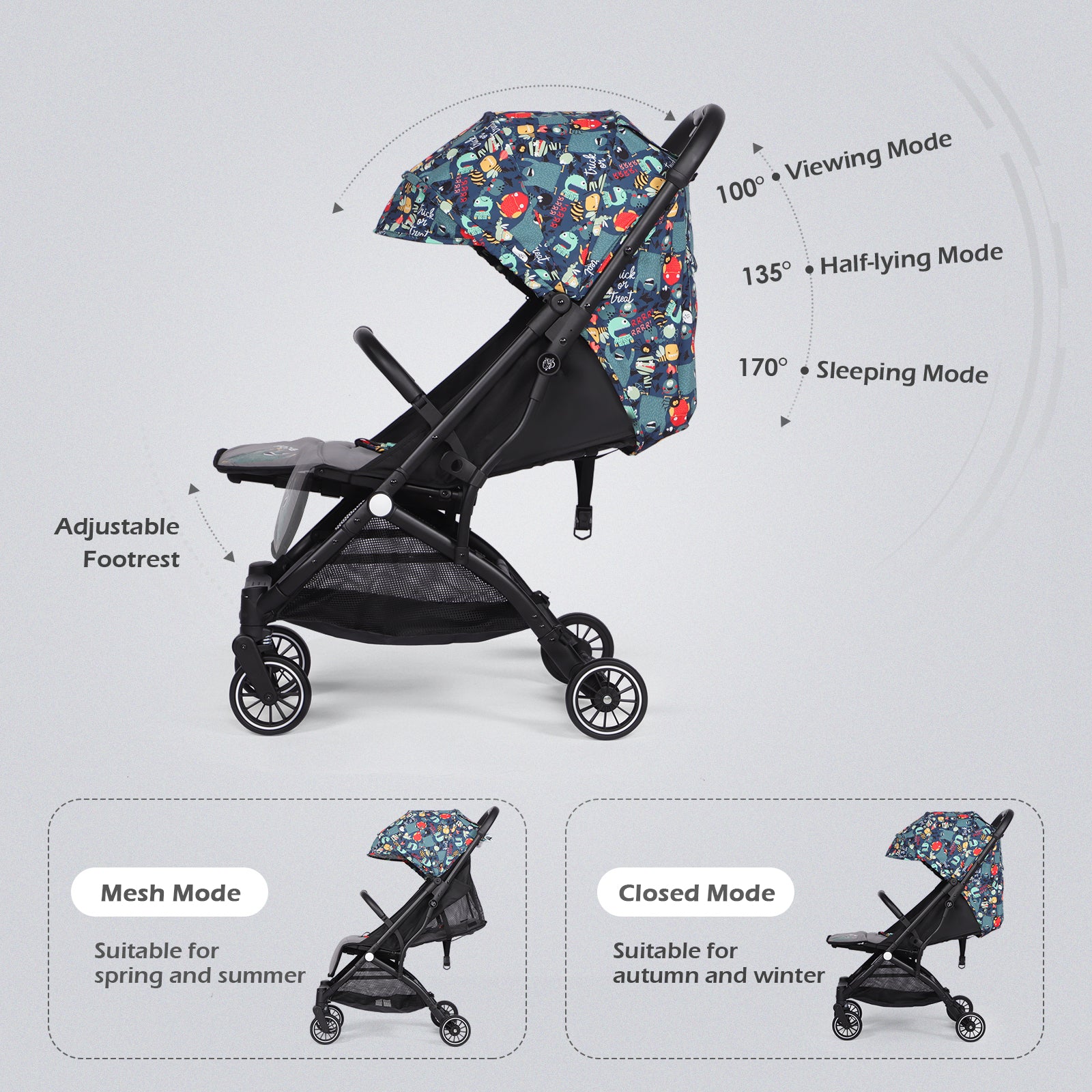 Lightweight Baby Pushchair with Adjustable Seat